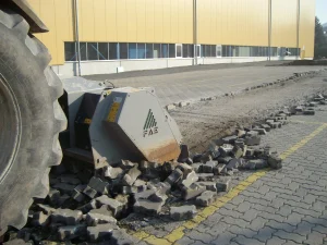 Wege- und Steinfräsarbeiten für schwere Einsätze zum Erreichen der gewünschten Körnung. Brechen von Betonpflaster
