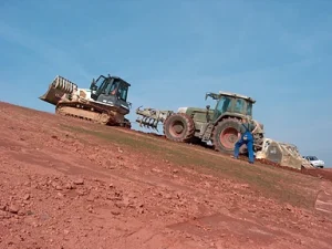 Tonfräsarbeiten werden erbracht, um Ton in eine gewünschte Körnung zu bringen und somit die erforderlichen Verdichtungswerte bzw. Feuchtigkeitswerte zu erreichen, welche für die speziellen Deponien benötigt werden.